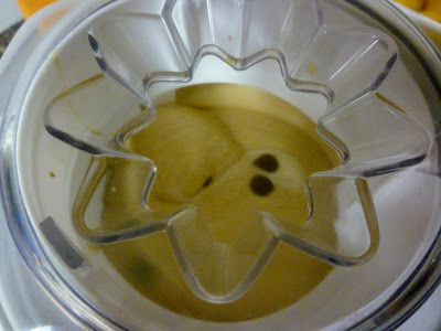 Ready.. steady.. freeze! I didn't really time any of this, but kept an eye on it.. The ice cream will get very full and nearly overflow. When that happens, stop the machine. I scooped everything out with a large silicon spoon and put it in some tupperware to freeze. It'll be runny, but with a few hours or a good overnight freeze, the consistency should be just right!